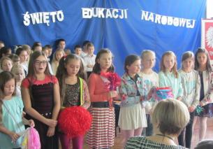 Tego dnia nie ma zajęć dydaktycznych w szkole, a świętują wszyscy – uczniowie, nauczyciele i pracownicy. Jak co roku zostali oni zaproszeni na salę gimnastyczną. Tu okolicznościowy program przedstawiła klasa IVB pod opieką pani Sandry Skowronek, a oprawę muzyczną przygotował chór pod kierunkiem pani Krystyny Bander. Tym razem jurorzy oceniali występy kolegów. W tej roli świetni byli Oliwier Janik i Olek Pytel, którzy znakomicie rozkręcali publiczność. A ich koledzy skarżyli się na szkolną rzeczywistość: