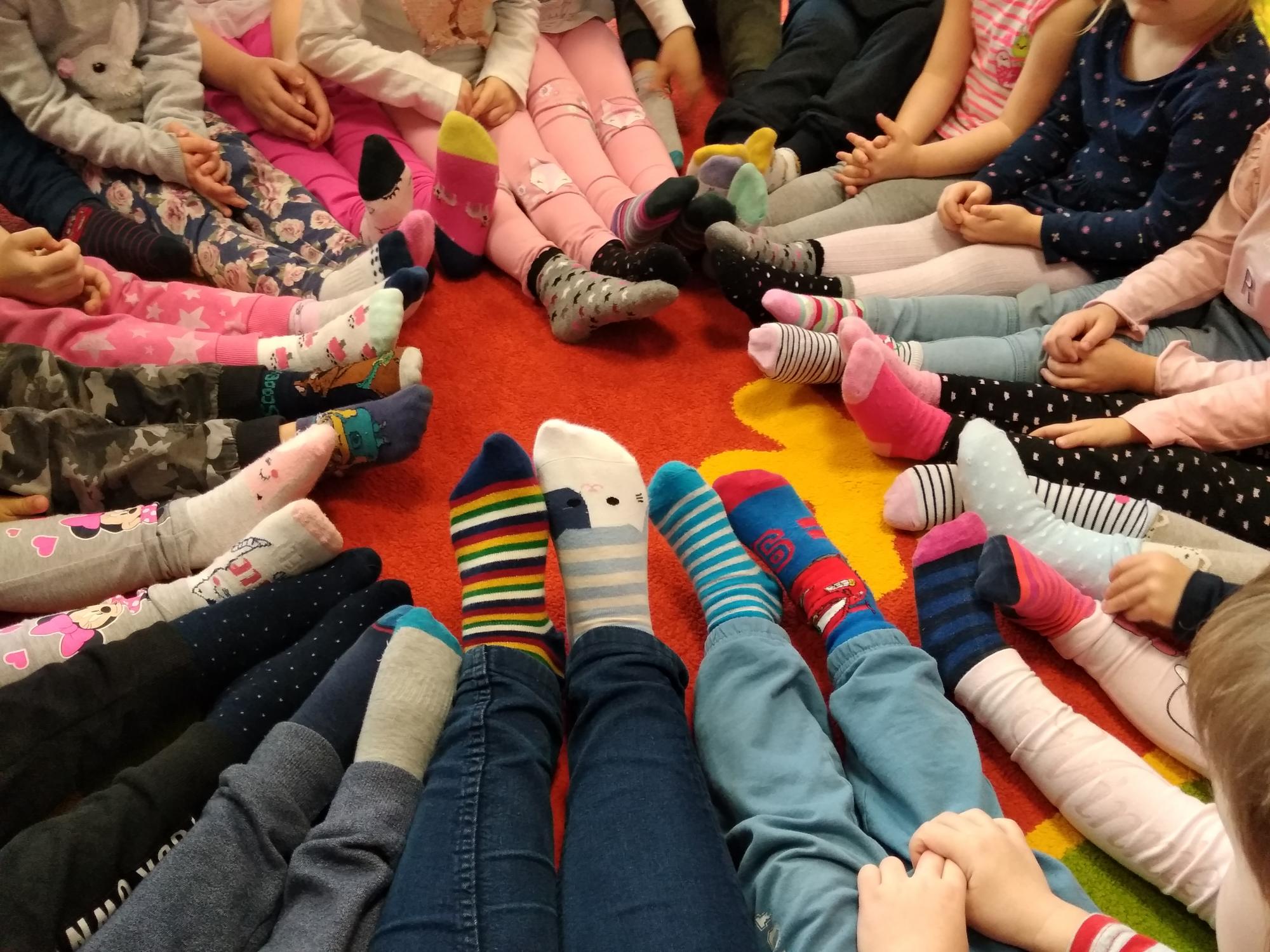 Dzień ten był wspaniałą okazją do rozmowy na temat tolerancji oraz niesienia pomocy słabszym osobom. W trakcie zajęć maluszki dowiedziały się, że każdy z nas jest inny, ale przede wszystkim każdy z nas jest wyjątkowy. Przedszkolaki wykonały również prace plastyczne „Kolorowe skarpety”, które przyozdobiły naszą gazetkę przedszkolną.