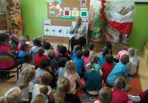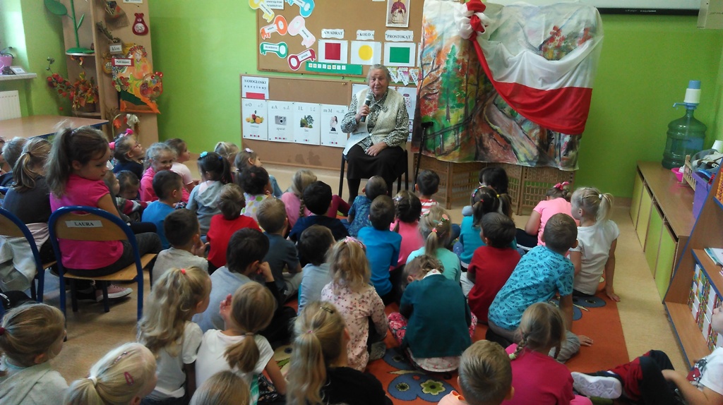 Dnia 25 października obchodziliśmy 80-tą rocznicę wybuchu II wojny światowej w ramach akcji Ministerstwa Edukacji Narodowej „SZKOŁA PAMIĘTA”. Najstarsze grupy przedszkolne zebrały się w jednej z sal i z zaciekawieniem słuchały opowieści pani Heleny Biby - najstarszej mieszkanki Wilamowic.