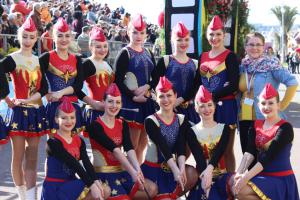 Mażoretki Nemezis występowały zarówno w dzień jak i w nocy, w blaskach fleszy i rozbłyskujących kolorowych światłach. Również w kilku kluczowych miejscach pięknej Nicei można było podziwiać polską grupę. Swym uśmiechem i energią przyciągały tłumy widzów, którzy niejednokrotnie dołączali się do tańca. Mażoretki maszerowały jako pierwsza grupa tuż za symbolami karnawału - czyli dwoma ogromnymi kukłami Króla i Królowej Karnawału. Parady obfitowały w tony barwnych kwiatów i kolorowych konfetti, którymi obsypywane były dziewczęta.