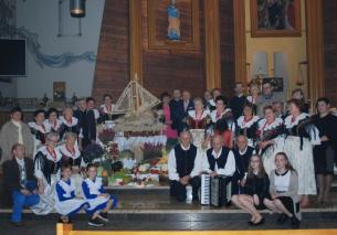 17 września w naszej parafii dziękowaliśmy Panu Bogu za tegoroczne zbiory. Dziękowaliśmy także rolnikom, pszczelarzom, sadownikom i ogrodnikom, ludziom, dzięki którym tegoroczne plony będą na naszych stołach. Tradycyjnie już pieśnią zespół regionalny „Pisarzowianki” rozpoczął dożynki parafialne. Następnie sołtys pan Stanisław Peszel poprosił księdza proboszcza o odprawienie Mszy świętej dziękczynnej dożynkowej. Poprosił także o poświęcenie miodu, wina, owoców i kwiatów. Mszę Świętą w intencji ww. odprawił ksiądz proboszcz Janusz Gacek w asyście wikariusza ks. Piotra. Orkiestra dęta OSP pod batutą Stanisława Trembli wprowadziła orszak dożynkowy do kościoła. Z symbolicznym bochenkiem chleba i koszem owoców do ołtarza szli Starostowie Dożynek państwo Urszula i Marek Tora. Wieniec dożynkowy u stóp ołtarza złożyły panie z Koła Gospodyń Wiejskich. Kwiaty i zboże pod zasiew niosły dzieci, Arek, Zuzanna i Kaja. Pszczelarze pan Jerzy Smolarski i pan Adam Pieczka jak co roku ofiarowali złocisty miód, a Sołtys wsi pan Stanisław Peszel z małżonką wino mszalne. W trakcie mszy świętej ks. proboszcz Janusz Gacek w asyście ks. Piotra poświęcił piękny bochen chleba, upieczony przez państwo Renatę i Andrzeja Mandów, wieniec zaprojektowany przez panią Urszulę Kucharską, a wykonany pod jej kierunkiem przez panie z KGW. W tym roku była to Łódź Piotrowa, której stelaż wykonał p. Zbigniew Barabasz. Proboszcz poświęcił także tegoroczne symboliczne zbiory, które stanowiły piękną dekorację ołtarza. A wykonali ją państwo Jadwiga i Konrad Kobielus oraz pani Wanda Adamczyk.