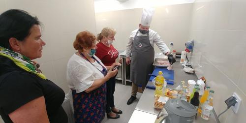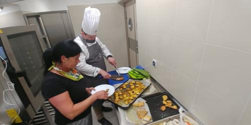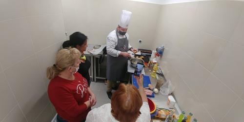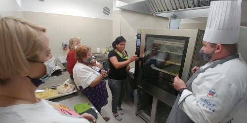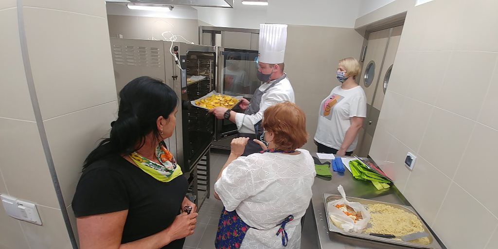 Pracownicy domu kultury i panie z Koła Gospodyń Wiejskich "Strażniczki Tradycji" wzięły udział w szkoleniu z zakresu obsługi nowego wyposażenia kuchni w modernizowanym Wiejskim Domu kultury w Pisarzowicach. Szkolenie przeprowadził Pan Dawid Domin, doradca kulinarny. W trakcie praktycznego szkolenia powstały pyszne dania przyrządzone w piecu konwekcyjnym, którego możliwości okazały się nieograniczone.