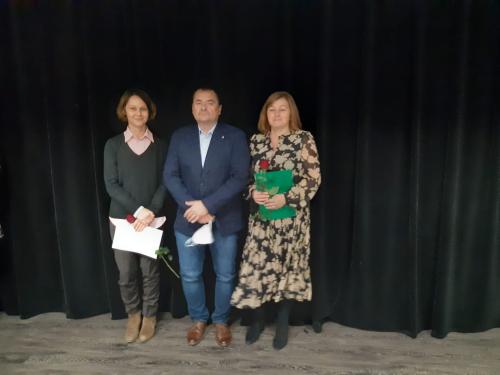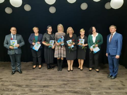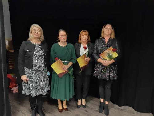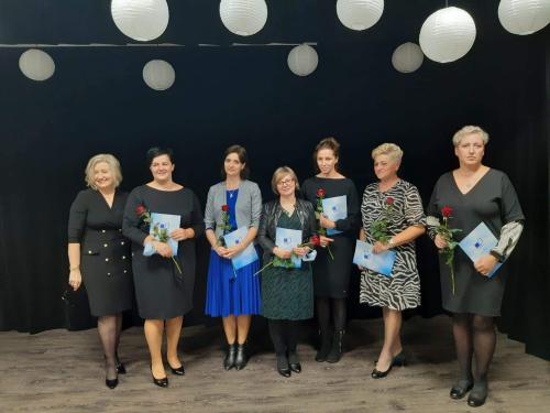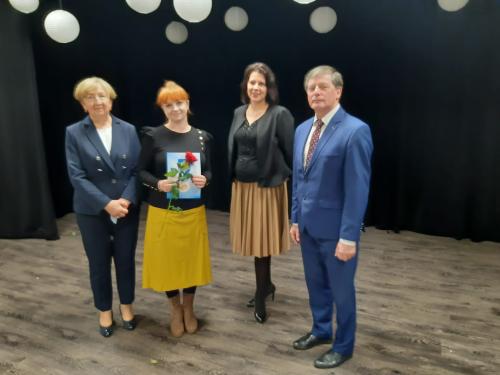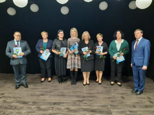 Następnie zostały wręczone podziękowania dla nauczycieli i pracowników oświaty, którzy w roku 2021 przeszli na emeryturę, rentę lub świadczenia kompensacyjne. A byli to: Małgorzata Bloch, Maria Cholewka oraz Irena Grzybowska z Zespołu Szkół w Wilamowicach, Barbara Danek, Renata Zemanek oraz Cecylia Olekszy z Przedszkola Publicznego w Pisarzowicach, Barbara Kubiczek, Barbara Felusiak-Zawada oraz Teresa Mach-Orzech ze Szkoły Podstawowej w Pisarzowicach, Renata Markiel, Bernadeta Mocała, Mirosława Nikiel, Maria Sztafińska oraz ks. Grzegorz Then z Zespołu Szkolno-Przedszkolnego w Starej Wsi, Jolanta Nikiel oraz Czesław Tora z Zespołu Szkolno-Przedszkolnego w Hecznarowicach.