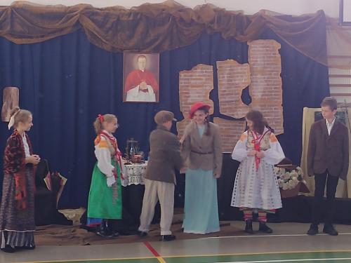 Uroczystość Dnia Patrona rozpoczęliśmy niezwykłą miniaturą teatralną przygotowaną przez siostrę Kazimierę Szumal. Uczniowie przypomnieli sobie najważniejsze informacje z życia abpa Józefa Bilczewskiego.