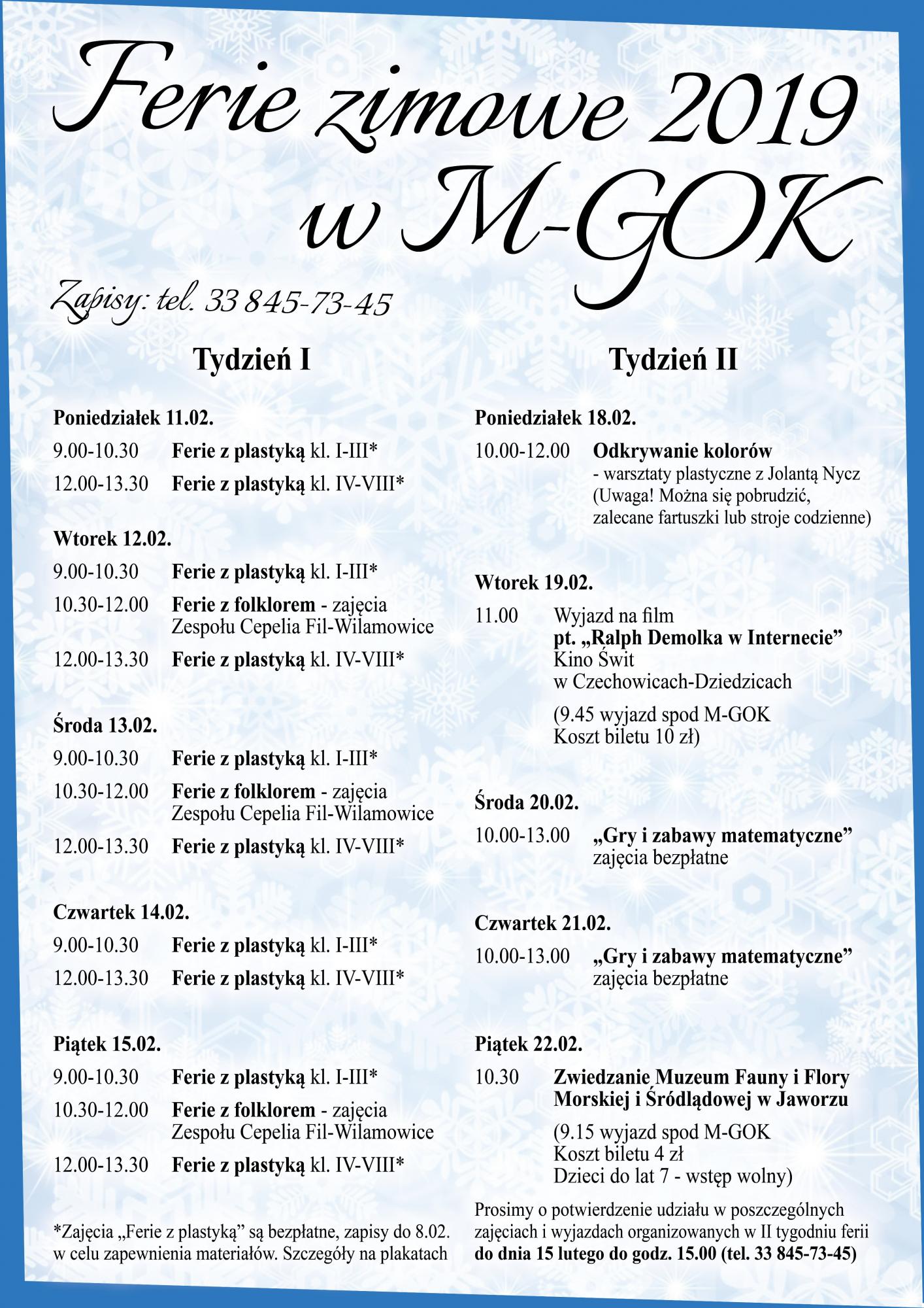 Ferie w M-GOK! Zapraszamy do zapisów!
