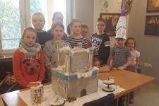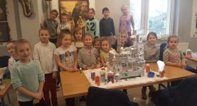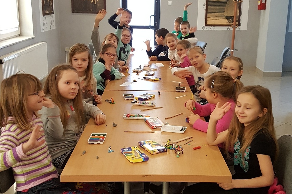 Mali artyści rozpoczęli zajęcia od wykonania z plasteliny bajecznie kolorowych zwierzątek, a wzorując się na artyście bliskiemu naszemu regionowi jakim był Julian Fałat, namalowali akwarelami niepowtarzalne zimowe pejzaże. W iście twórczym bałaganie uczestnicy wykonali makietę bajkowej "Krainy Lodu" i poznali magię kolorów rysując liczne prace suchymi pastelami. Cykl zajęć zakończyło niezwykle wyczekiwane malarstwo na płótnie, którego tematem była szeroko rozumiana interpretacja słowa "Inspiracja".