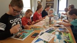 Warsztaty gromadziły codziennie 30 dzieci chętnych do pogłębiania i kształtowania swoich umiejętności manualnych. Cały tydzień obfitował w zabawę wieloma technikami i był okazją do kreowania prac o różnorodnej tematyce.