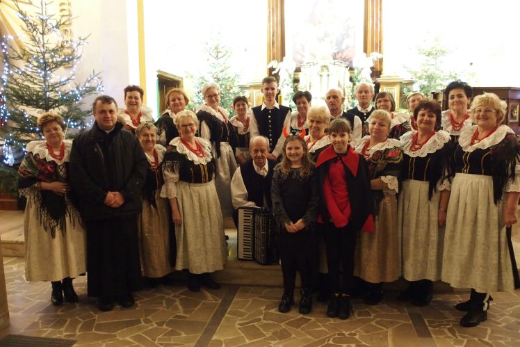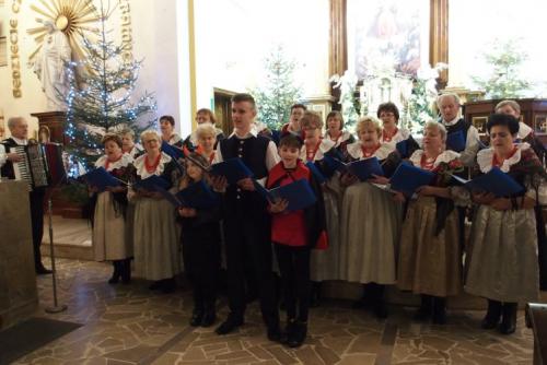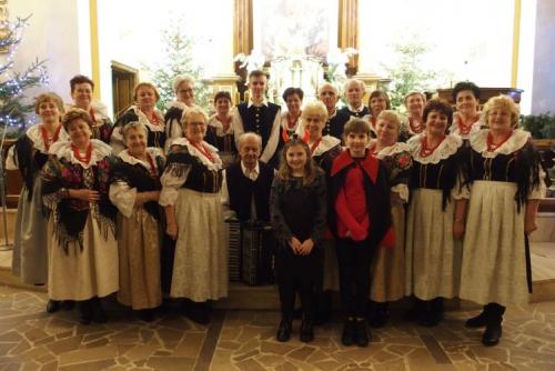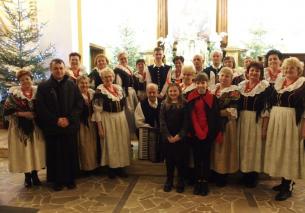 Zespół Regionalny „Pisarzowianki” uświetnił także śpiewem kolęd mszę świętą. Po występach kolędnicy otrzymali pamiątkową statuetkę oraz dyplom i zostali zaproszeni przez księdza proboszcza Stanisława Filapek do Domu Katechetycznego na poczęstunek przygotowany przez Stowarzyszenie Opatrzność.