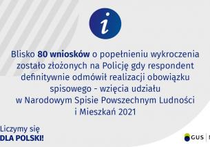 Przypominamy, że udział w #SpisPowszechny jest obowiązkowy. Za odmowę udziału w spisie grozi kara grzywny. #Policja otrzymała już blisko 80 wniosków o popełnienie wykroczenia, związanego z odmową udziału w spisie.