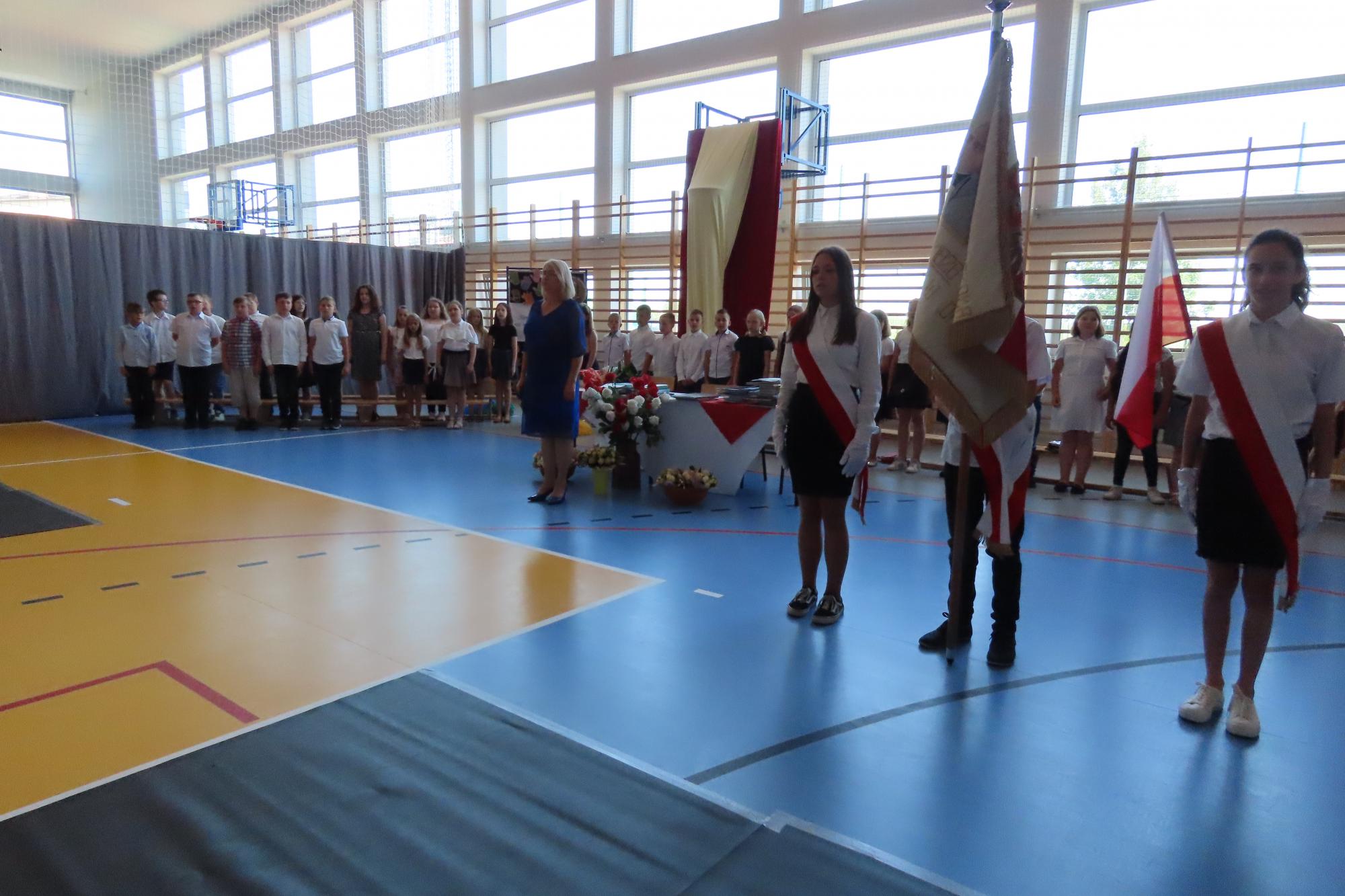 Pani Dyrektor Dorota Foltan przywitała zaproszonych gości oraz całą społeczność szkoły. Podziękowała wszystkim nauczycielom i uczniom za włożony trud, wysiłek i zaangażowanie w zgłębianie tajników wiedzy, w zdobywanie nowych umiejętności, poznawanie i rozwijanie zdolności i talentów. Na ręce Gospodarzy Gminy Wilamowice złożyła serdeczne podziękowanie za ogromne wsparcie w pracy na rzecz edukacji, wychowania i rozwoju młodego pokolenia. Pogratulowała wszystkim uczniom wyników w nauce, zwycięstw w wielu konkursach, zawodach sportowych, licznych występów wokalnych, sukcesów plastycznych, angażowania się w pracę na rzecz szkoły i środowiska lokalnego. Wraz z wychowawcami wręczyła świadectwa oraz nagrody książkowe uczniom.