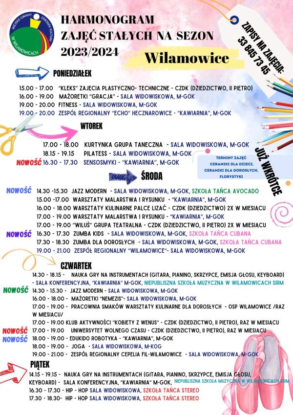 Harmonogram zajęć stałych na sezon 2023 / 2024