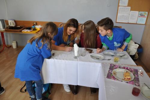 Przybyli delegaci mogli dowiedzieć się wielu ciekawostek związanych z życiem Henryka Sienkiewicza, między innymi, że zmagał się on z kompleksami z powodu swojego niskiego wzrostu oraz że był aż trzy razy żonaty, a każda z jego żon miała na imię Maria. Uczniowie ze szkół naszej gminy wzięli udział w quizach i konkursach, popróbowali swoich sił w układaniu fabuły w różnych stylach i miło spędzili czas w gronie nowych kolegów i koleżanek. Po zakończeniu merytorycznej części sesji delegaci zwiedzili szkołę, wymienili swoje doświadczenia, a także zaplanowali wyjazdowe warsztaty, które odbędą się w listopadzie. Tematem będą zasady funkcjonowania jednostek samorządu terytorialnego w Polsce oraz władza państwowa.