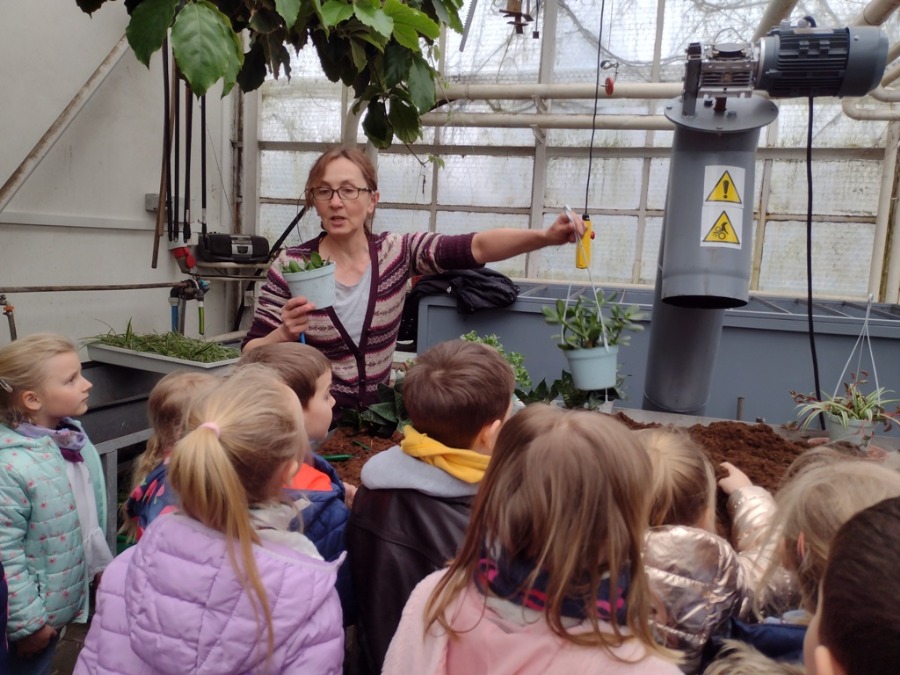 Pierwszym przedsięwzięciem był wyjazd wszystkich naszych przedszkolaków do Gospodarstwa Ogrodniczego państwa Mleczków. Spacer wzdłuż wyznaczonych alejek w szklarni pozwolił zobaczyć z bliska wiele roślin, także tych egzotycznych. Podczas ,,warsztatów ogrodniczych” dzieci w sposób praktyczny doświadczyły możliwości sadzenia lub siania oraz dzieliły się całkiem sporą już wiedzą na temat uprawy roślin. Przedszkolaki bardzo chętnie zadawały pytania pani ogrodniczce, dotyczące nazw czy uprawy danych roślin. W kolejnej części spotkania poszczególne grupy udały się na krótki spacer wokół całego gospodarstwa. Do przedszkola dzieci wróciły zadowolone oraz zaopatrzone w nasionka roślin i warzyw. Bardzo dziękujemy państwu Elżbiecie i Markowi Mleczkom za zaproszenie nas do swojego gospodarstwa i poświęcenie swojego czasu.