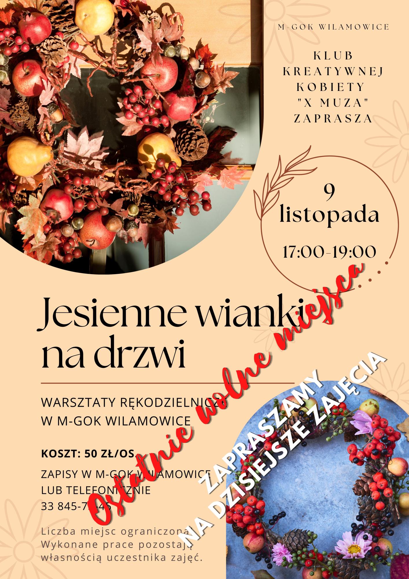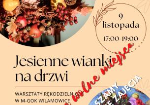 Już dziś zajęcia rękodzielnicze "Jesienne wianki na drzwi". Zostały ostatnie wolne miejsca! śr., 2022-11-09 12:47 | Anna Klimczak