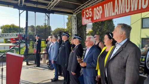 Oficjalna część obchodów miała miejsce na placu LKS Wilamowiczanka. Meldunek o rozpoczęciu uroczystości odebrał Komendant Miejskiej PSP w Bielsku-Białej st. bryg. Zbigniew Mizera, dokonując następnie przeglądu pododdziałów. Po podniesieniu flagi państwowej i odegraniu hymnu państwowego Prezes Zarządu OSP w Wilamowicach dh Jacek Tetłak przywitał zaproszonych gości, wśród których m.in byli: