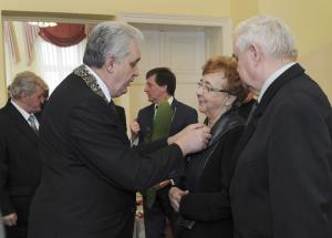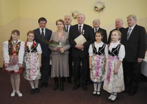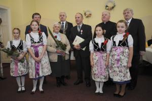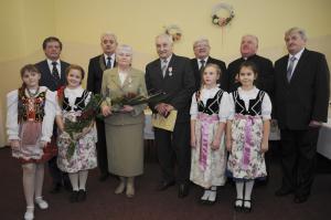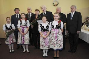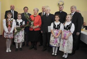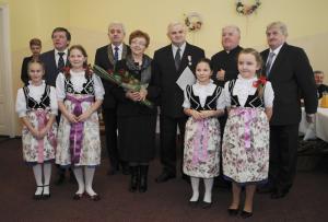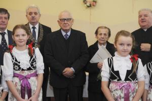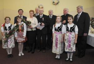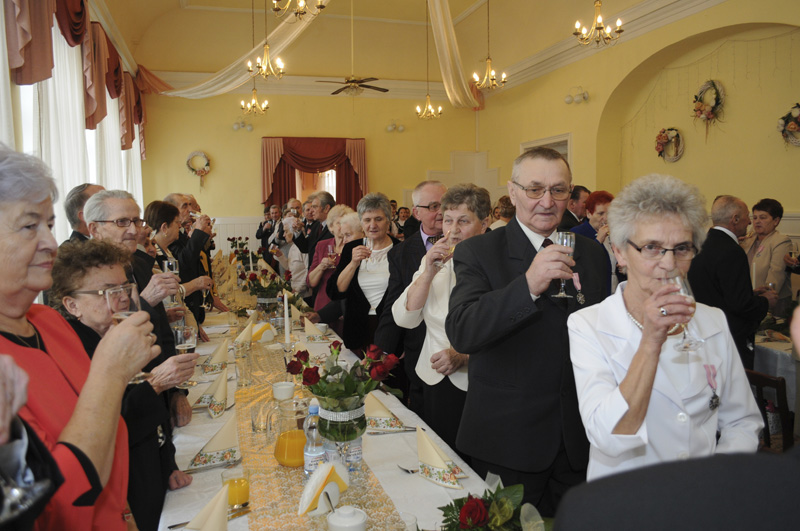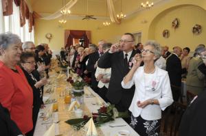Kolejna część spotkania odbyła się w restauracji "Rogowa" w Wilamowicach. Tutaj szanowni Jubilaci z rąk burmistrza Wilamowic Mariana Treli otrzymali medale za długoletnie pożycie małżeńskie przyznane przez Prezydenta RP Andrzeja Dudę. Do życzeń i gratulacji dołączyli również zastępca burmistrza Stanisław Gawlik, Przewodniczący Rady Miejskiej Stanisław Nycz, Kierownik Urzędu Stanu Cywilnego Elżbieta Hoder, księża i sołtysi z sołectw należących do gminy. Jubilatom wręczono kwiaty i dyplomy, po czym wzniesiono uroczysty toast i odśpiewano tradycyjne 100 lat. Uroczystość uświetnił występ artystyczny przygotowany przez Zespół Wokalno - Taneczny działający przy Zespole Szkół w Dankowicach, którego kierownikiem jest Marzena Jarosz. Swoje życzenia dla Jubilatów młodzi artyści wyrazili wierszem i piosenką.
