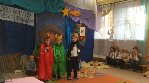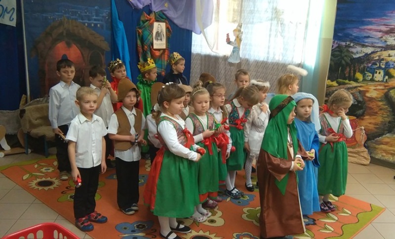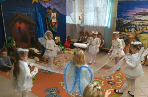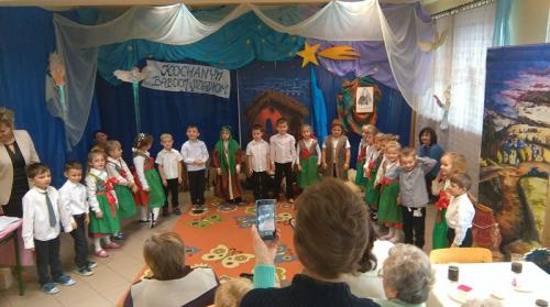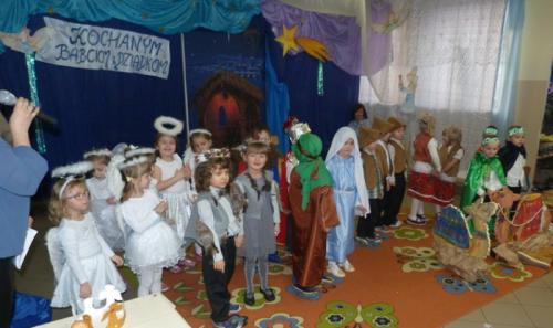Każda z grup na miarę swoich możliwości wykonała „Jasełka”. U maluszków były one połączone ze wspólnym kolędowaniem. Najmłodsze dzieci jeszcze nie potrafią wszystkiego wypowiedzieć, ale zupełnie dobrze radzą sobie w śpiewie zbiorowym, tańcu i kolędowaniu. U starszych dzieci przedstawienia były na wysokim poziomie, zachwycały bogate scenariusze i piękne stroje. Oprawa muzyczna na tle profesjonalnej scenografii sprawiła duże wrażenie. Dzieci wykonały tańce aniołów, gwiazdek, śpiewały zbiorowo i indywidualnie.