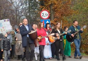 Następnie cały barwny korowód przy śpiewie i akompaniamencie gitar Diakoni Muzycznej zmierzał z kościoła do Wiejskiego Domu Kultury. Na czele rozśpiewanej i radosnej procesji, jechał na białym koniu główny patron naszej parafii - święty Marcin. W Domu Kultury dla wszystkich uczestników czekała ciepła herbatka, soki i słodycze. Słodycze, herbatkę i soki sponsorowała Rada Sołecka, wraz z Zarządem KGW, a przygotowaniem poczęstunku zajęły się panie z Koła. Nad bezpieczeństwem rozśpiewanego korowodu czuwali nasi strażacy. Każdy uczestnik przebrany za postać świętego otrzymał obrazek z podobizną świętego Marcina (patrona żołnierzy i młynarzy) oraz kolorową opaskę na rękę z przesłaniem „Idę za Jezusem”.
