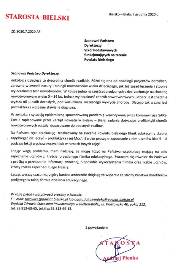 Poniżej zamieszczamy skan pisma adresowanego do dyrektorów szkoł, przybliżający tę inicjatywę.