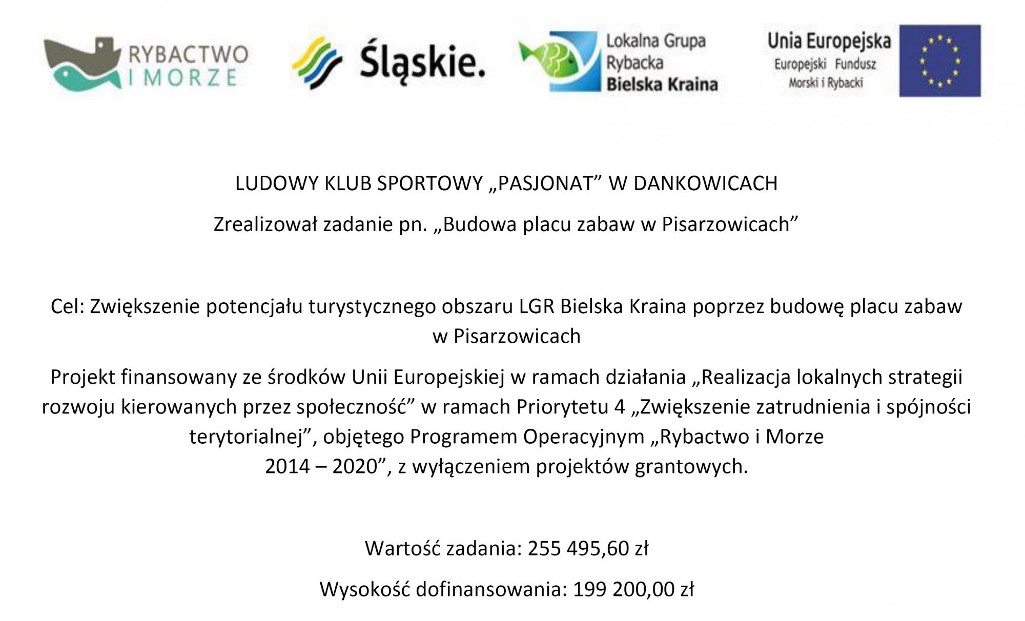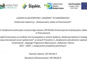 LUDOWY KLUB SPORTOWY „PASJONAT” W DANKOWICACH zrealizował zadanie pn. „Budowa placu zabaw w Pisarzowicach”