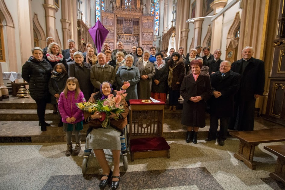 12 marca 2016 r. Pani Aniela Kwarciak wraz z rodziną i zaproszonymi gośćmi w kościele Przenajświętszej Trójcy w Wilamowicach dziękowała Panu Bogu za cudowny dar 103 lat życia.