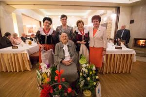 Po Mszy Świętej wszyscy uczestnicy udali się wraz z dostoją Jubilatką na uroczystości do Restauracji „Relax”. Wśród gości zaproszonym byli; prałat Michał Boguta, zastępca burmistrza Stanisław Gawlik, sołtys Pisarzowic Stanisław Peszel z małżonką i przedstawicielki Zarządu KGW w Pisarzowicach.
