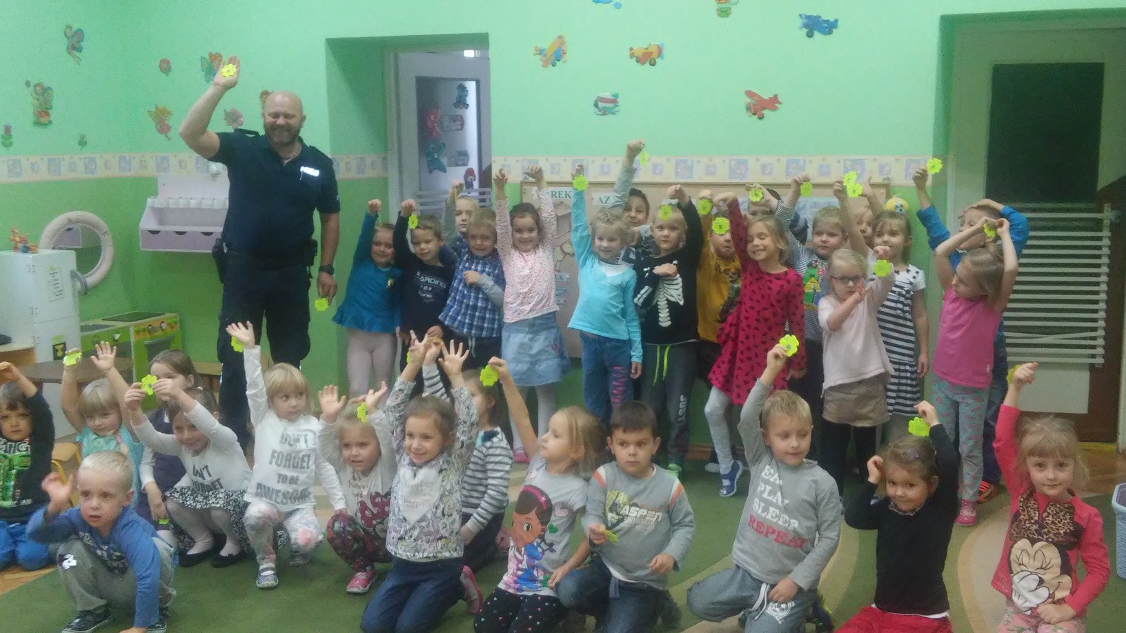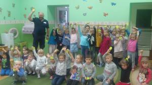 Spotkanie z przedszkolakami i uczniami klas nauczania początkowego miało na celu promowanie zasad bezpeczeństwa wśród najmłodszych uczestników ruchu drogowego. Dzieci z wielkim zainteresowaniem wysłuchały jak ważne dla ich bezpieczeństwa (zwłaszcza jesienią i zimą, gdy widoczność na drogach może być ograniczona) jest noszenie małych, ale bardzo ważnych elementów jakimi są odblaski. Z wielką radością odbierały z rąk policjanta kolorowe gadżety, deklarując jednocześnie ich nieustanne noszenie. Łącznie rozdano blisko 600 szt. odblasków.