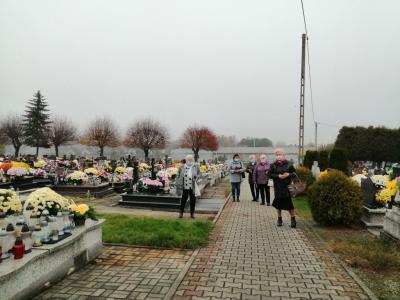 Członkinie Zarządu Koła Gospodyń Wiejskich „Strażniczki Tradycji” postanowiły w przeddzień Święta Niepodległości zapalić „znicz pamięci” na grobach postaci ważnych dla naszej miejscowości Pisarzowice, którzy spoczywają na naszym cmentarzu. Odwiedzając groby, pomniki pamięci, przewodnicząca przedstawiła członkiniom krótką historię osoby spoczywającej w tych miejscach. Panie rozpoczęły spacer pamięci od pomnika ku czci poległych mieszkańców podczas I i II Wojny Światowej. Pod pomnikiem od 1989 roku odbywały się uroczystości patriotyczne i apele poległych. Obostrzenia związane z pandemią niestety uniemożliwiły w tym roku uczcić poległych w ten właśnie sposób. Następnie odwiedziły grób rodzinny Barbary Bulowskiej - właścicielki górnego dworu oraz wnuka Witolda, grób Joanny Syskowej z Kleinów - nauczycielki i drugiej żony ówczesnego kierownika szkoły, zmarłej w 1906 r. Na płycie nagrobnej nauczycielki ludowej, 24-letniej Bogumiły Bieniek, która zmarła 1904 roku złożyły kwiaty co od wielu lat Zarząd KGW z Pisarzowic czyni. Panie odwiedziły również miejsce pochówku pierwszej położnej w Pisarzowicach Marii Lach. Grób kierownika szkoły jak i nauczyciela Kazimierza Otłoga, który kierownikiem szkoły był od 1945 roku do 1977 roku oraz nauczycielki Stefanii Papla. Panie zapaliły znicz przed kaplicą cmentarną gdzie w podziemiach są pochowani księża pracujący w naszej parafii. Kaplicę tę ufundował ks. Mika w 1863 roku jako grobowiec dla księży. Spacer "płomieniem zniczy pamięci" panie zakończyły przy tablicy pamiątkowej poświęconej urodzonemu w Pisarzowicach pułkownikowi Marianowi Pilarskiemu. Pułkownik Pilarski to bohater I jak i II Wojny Światowej. Żołnierz wyklęty, aresztowany przez WUBP. Skazany na czterokrotną karę śmierci. Wyrok wykonano 4 marca 1952 r. na zamku w Lublinie. Zatrzymały się także i zadumały przy tablicy umieszczonej na ścianie budynku GCDT w Pisarzowicach, a dedykowanej 7 pisarzowickim ochotnikom, członkom ówczesnego Towarzystwa Gimnastycznego ”Sokół” i umundurowanym dzięki składkom Towarzystwa. To oni wyruszyli 2 sierpnia 1914 roku koleją z Kóz do Wadowic, by zaciągnąć się do Legionów Polskich. Ich śladem poszło w niedługim czasie około 200 innych ochotników.