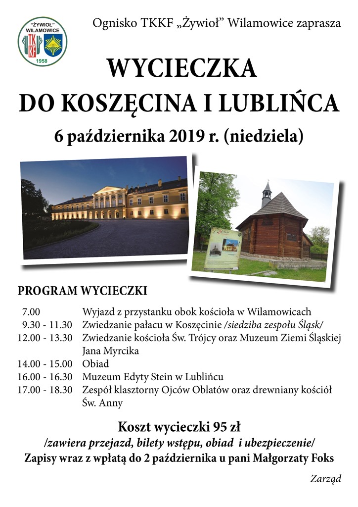 OGNISKO TKKF ŻYWIOŁ WILAMOWICE organizuje wycieczkę do Koszęcina i Lublińca pon., 2019-09-16 10:57 | Anna Klimczak