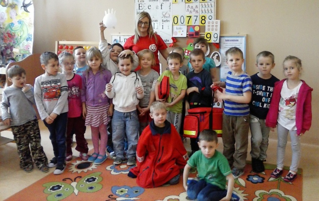 Udzielanie pomocy w chwilach zagrożenia życia nie jest sprawą łatwą. Zwykle blokuje nas obawa czy na pewno uczynimy to dobrze, dlatego ważną sprawą jest poznanie zasad udzielania pierwszej pomocy. Nie ma praktycznie dolnej granicy wieku, w którym należy przyswajać wiedzę z tego zakresu. Z mediów wiemy o przypadkach ratowania życia już przez dzieci przedszkolne. Wiedząc jak chłonny jest umysł małego dziecka nasze przedszkolaki uczestniczyły w profesjonalnym kursie udzielania pierwszej pomocy. Szkolenie prowadzone było przez ratowników medycznych, na co dzień pracujących w pogotowiu ratunkowym. Przebiegało ono dwuetapowo.