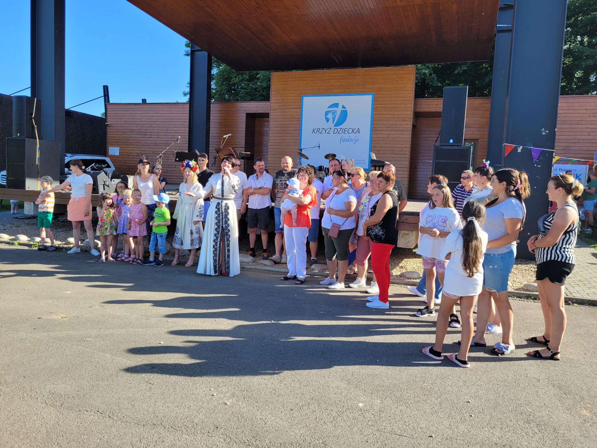 Kolejną atrakcją dla dzieci, i nie tylko, były mega wielkie bańki mydlane, oraz pokaz zamykania dzieci w bańce mydlanej. Na pikniku nie mogło zabraknąć dmuchanych zamków dla najmłodszych, pysznych potraw z grilla oraz waty cukrowej i koników na druciku (wykonanych na warsztatach artystycznych). Po warsztatach atrakcje przeniosły się na scenę. Prowadzący wydarzenie – Grzegorz Cieślak przedstawił wszystkim osobę dzięki, której możemy bezpośrednio pomagać na Ukrainie, to Pani Olga Bielica organizuje przewóz darów, jest pośrednikiem między darczyńcami a potrzebującymi.