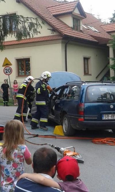 Wspaniałe widowisko zorganizowali druhowie z OSP Pisarzowice. Zaprezentowali rodzicom i dzieciom sprzęt do ratownictwa drogowego. Głównym punktem programu było rozcinanie samochodu oraz ratowanie kierowcy. Pokaz ratownictwa przedmedycznego poprowadził i objaśnił prezes OSP pan Tadeusz Łaś. W jego stronę kierujemy ogromne podziękowania.