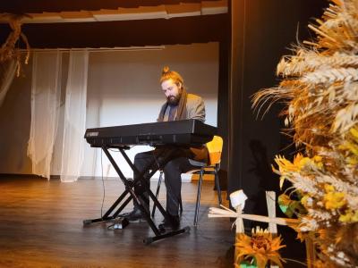 Na zakończenie mogliśmy wysłuchać wzruszających pieśni w wykonaniu artystki, która przybyła do nas z Ukrainy-Swietłany Andruszkiw. Dziękujemy bardzo za ten wspaniały występ i obecność. Na tą okazję przygotowana została również wystawa prac plastycznych związanych z postacią Świętego z Wilamowic. Zaprezentowane zostały dzieła uczniów z Zespołu Szkół w Wilamowicach, które nagrodzone zostały w Gminnym Konkursie Plastycznym, zorganizowanym pod patronatem Burmistrza Wilamowic. Druga wystawa przedstawiała osobiste rzeczy Świętego, zdjęcia i książki, które udostępnił Ks. Eugeniusz Nycz.