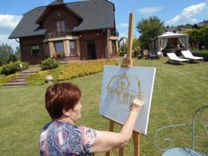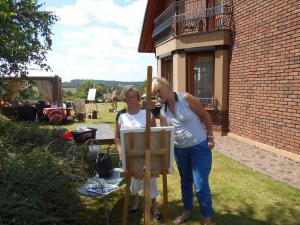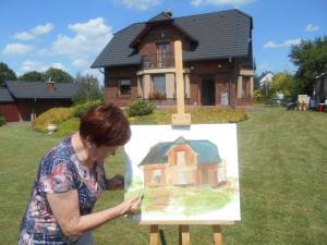 Korzystając z pięknej pogody w sobotę 29 lipca spotkała się, działająca w naszej gminie Grupa Malarzy i Rzeźbiarzy im. Honoraty Mynarskiej. Celem spotkania było zorganizowanie letniego pleneru malarsko - rzeźbiarskiego. Pomysłodawcą spotkania był jak zawsze nasz radny pan Władysław Carbol. Jedna z artystek, pani Barbara Mynarska użyczyła swojego ogrodu przy jej uroczym dworku. Przepiękny widok na całą okolicę, kościółek w Starej Wsi, Chrobaczą Łąkę w Kozach czy dalej górę Czantorię wraz z panoramą Beskidu Małego i Śląskiego były inspiracją dla naszej grupy malarzy. Artyści mieli doskonałą okazję do wymiany doświadczeń w technikach malarskich i rzeźbiarskich. „Młodsi stażem” malarze słuchali rad starszych i bogatszych w doświadczenia ze sztuką kolegów i koleżanek. Podczas przerw w tworzeniu wspominano lipcowy wyjazd na Węgry oraz planowano dalszą pracę zespołu. Zwieńczeniem pleneru były wspólne zdjęcia oraz degustacja wypieków, w tym domowego chleba pieczonego według starych, tradycyjnych receptur. To wspólne spotkanie przyniosło grupie wiele radości, ale również natchnienia i motywacji do dalszego działania. Pozostanie na długo w pamięci serdeczność i szczodrość gospodarzy domu, którzy zadbali o to, by każdy gość czuł się u nich dopieszczony pod względem smakowym oraz estetycznym.