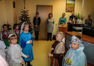 We wtorkowe przedpołudnie 18 grudnia 2018 r. dzieci z grupy V wraz z panią dyrektor Mariolą Dylewską-Mitoraj oraz panią dyrektor Elżbietą Maciejczyk odwiedziły Urząd Gminy w Wilamowicach. Dzieci w strojach Pani Zimy, Króla Mroza, Maryji, Józefa, Aniołków, Pastuszków, Pastereczek, Wilamowianek oraz Trzech Mędrców przedstawiły program jasełkowy zatytułowany ,,Szopka na polance”.