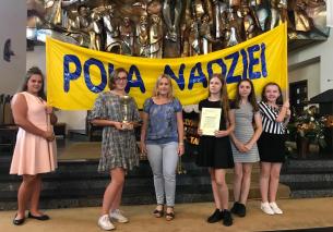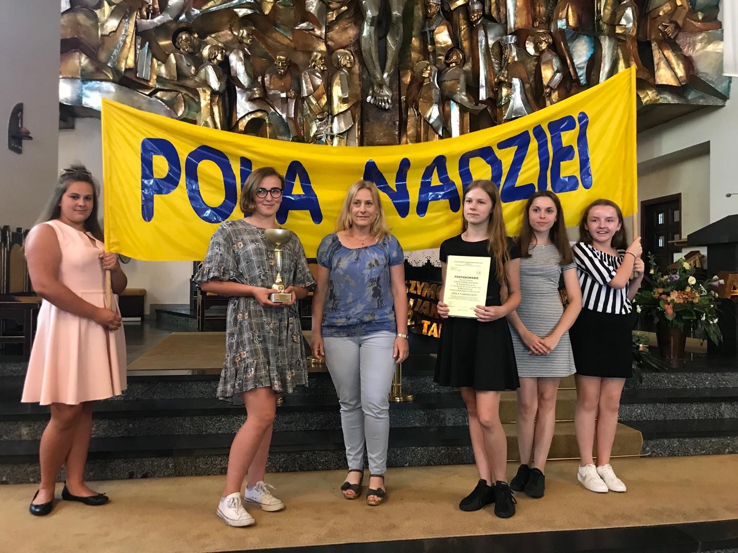 W poniedziałek 17 czerwca w bielskim kościele pw. NMP Królowej Polski miało miejsce uroczyste podsumowanie „Pól Nadziei 2019”. Uczestniczyli w nim m.in. przedstawiciele duchowieństwa, władz państwowych i samorządowych oraz delegacje ze szkół zgłoszonych do programu w roku szkolnym 2017/2018. Dankowickich uczniów pod opieką p. Zofii Bierońskiej reprezentowały uczennice kl. VII: Alicja Jarosz, Patrycja Gandor i Weronika Pilek oraz gimnazjalistki: Karolina Polak i Maria Ochman. Uroczystość rozpoczęło nabożeństwo odprawione pod przewodnictwem bp. Piotra Gregera.