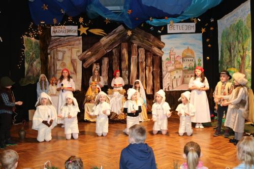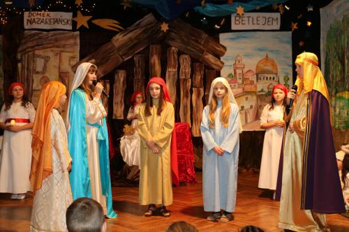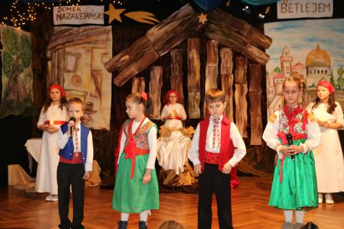 W specjalnie przygotowanych strojach teatralnych oraz w oryginalnej scenografii ukazującej domek nazaretański, polski Nazaret i Betlejem, młodzi aktorzy przedstawili sceny narodzin Chrystusa. Był św. Józef, Maryja, Trzej Królowie, Anioł Gabriel, pasterze i pasterki z owieczkami, dzieci i współczesna rodzina. Zgromadzona publiczność mogła przeżyć historię Zwiastowania Maryi i narodzin Dzieciątka Jezus. Współczesna rodzina polska ukazana w jasełkach, w dniu Wigilii także z utęsknieniem czekała na przyjście Jezusa. Dzieci w dowód wdzięczności podarowały nowo narodzonemu własnoręcznie wykonane ozdoby w specjalnie ozdobionych torebkach. Przygotowały dla Jezusa tańce i śpiewy. Przedszkolaki w roli owieczek zaśpiewały i zaprezentowały układ choreograficzny do pastorałki „Tobie mały Panie”. Nie mogło zabraknąć motywów regionalnych, czyli dzieci w strojach wilamowskich tańczących i prezentujących swoje kwestie.