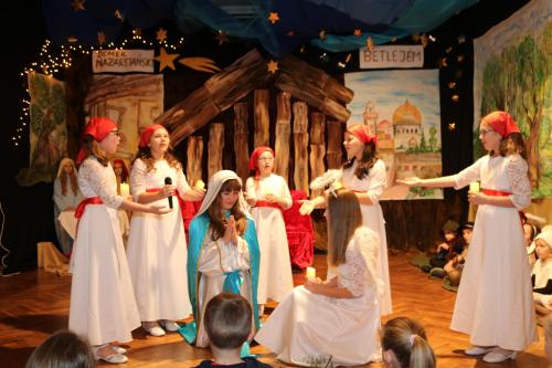 Chór w wykonaniu uczniów klas starszych swym pięknym śpiewem podbił serca publiczności. Niejednej osobie zakręciła się łza w oku... Kiedy część artystyczna dobiegła końca, występujący aktorzy otrzymali gromkie brawa. Występ był niezwykłym przeżyciem zarówno dla aktorów, nauczycieli jak i zaproszonych gości.
