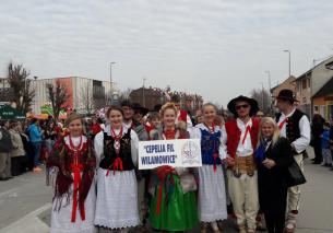 Po niedzielnej mszy św. przy pięknej pogodzie ulicami miasta przeszedł barwny korowód, który rozpoczęli jeźdźcy na koniach. Tuż za nimi przejechało kilkadziesiąt pięknie udekorowanych wozów konnych. Pochód licznie przebranych karnawałowych przebierańców, którzy prezentowali się na scenie w centrum miasta, zakończył występ Zespołu Cepelia Fil - Wilamowice i koncert naszej orkiestry.