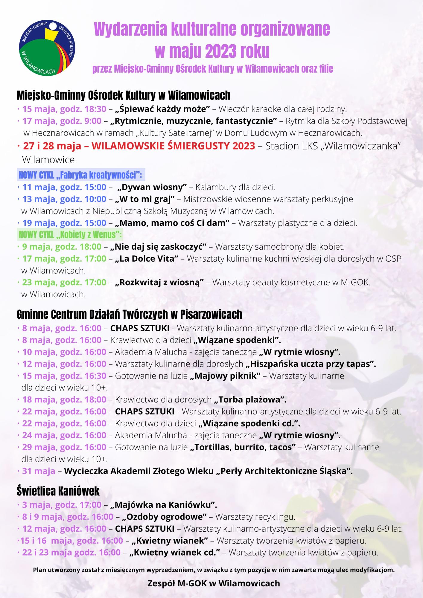 Przed nami wyjątkowy maj - zapraszamy do spędzenia go z M-GOK i filami śr., 2023-04-26 13:56 | Anna Klimczak