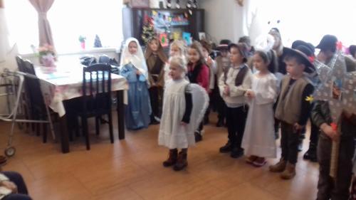 11 stycznia 2019 r. Dzieci 6-letnie z Zespołu Szkolno - Przedszkolnego w Hecznarowicach, pod opieką swoich wychowawczyń, w odświętnych strojach góralskich, kostiumach aniołków, Maryi, Józefa i z przepiękną szopką, własnoręcznie zrobiona przez jednego z rodziców, wyruszyły z kolędą do mieszkańców Domu Opieki „Magnolia” w Wilamowicach. Przedszkolaki zaprezentowały pensjonariuszom piękny świąteczno - noworoczny montaż słowno - muzyczny. Występ z udziałem tak małych aktorów dostarczył wszystkim wielu łez i wzruszeń.