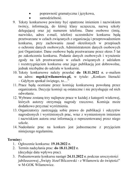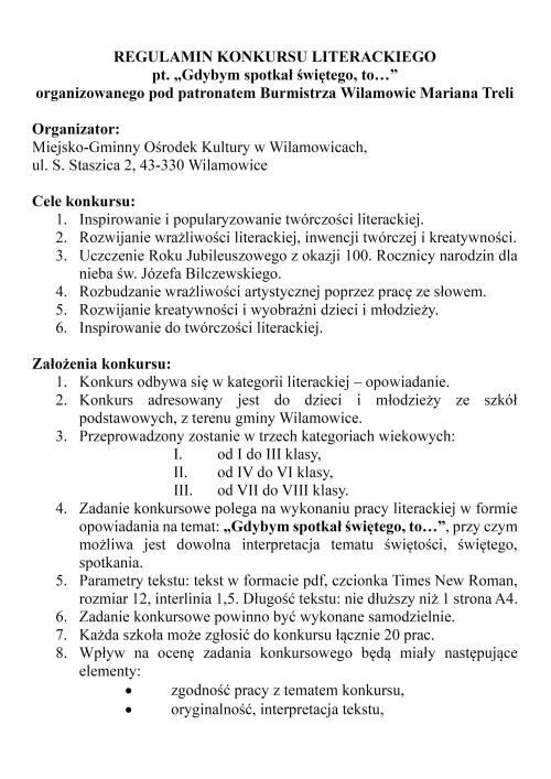 Regulamin Gminnego Konkursu Literackiego "Gdybym spotkał świętego, to..."