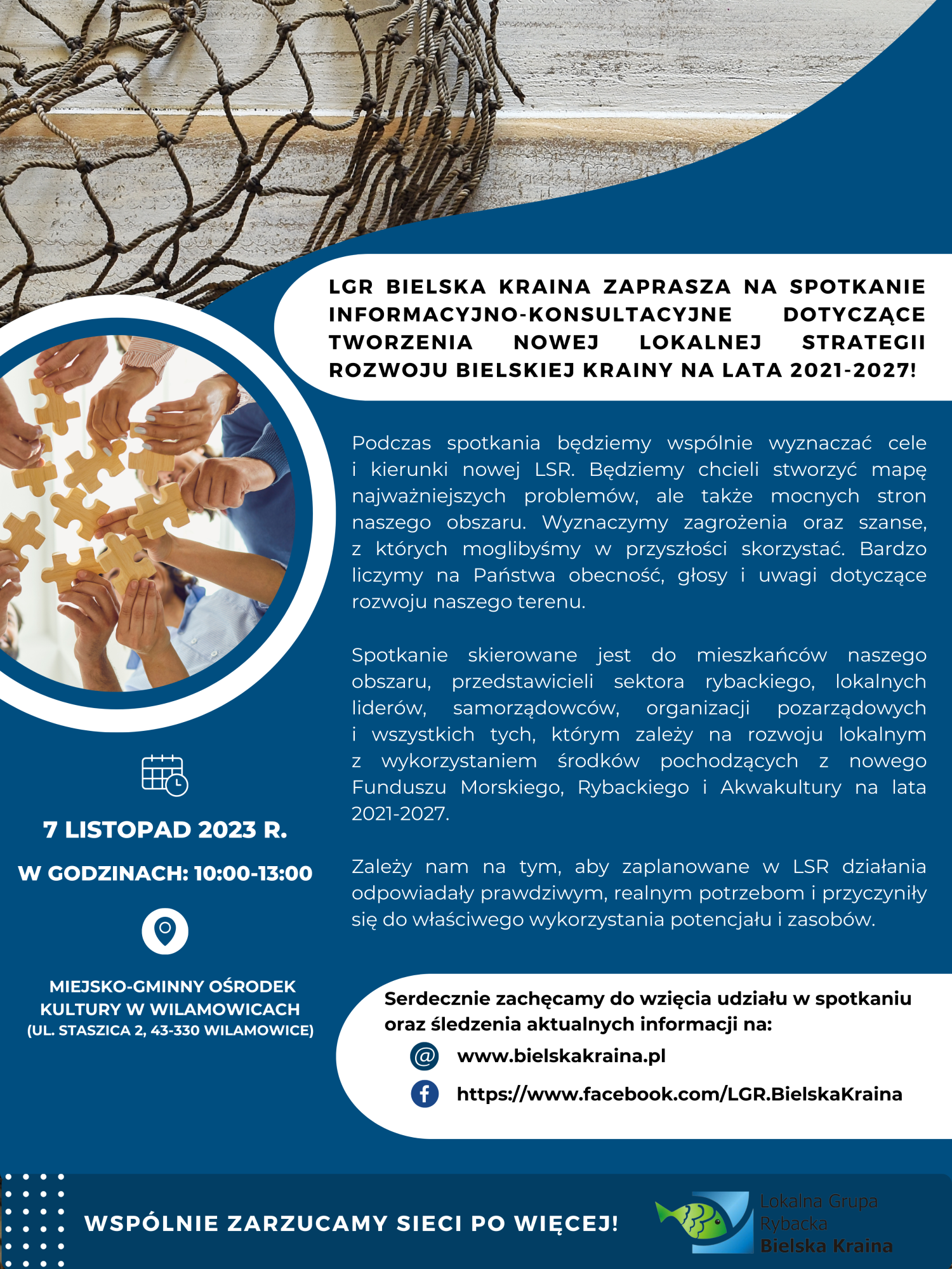 Spotkanie informacyjno-konsultacyjne dotyczące tworzenia nowej Lokalnej Strategii Rozwoju Bielskiej Krainy na lata 2021-2027. wt., 2023-10-24 10:59 | Damian Brożek