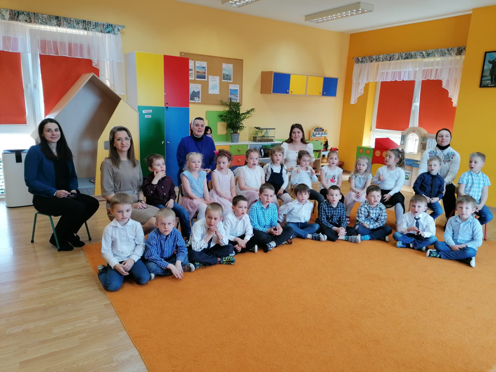 Kiedy Pierwsza Dama odwiedziła Przedszkole - Ochronkę w 2019 r. dzieci z tej grupy były maluszkami, mieli zaledwie 3 lata, jednak niektórzy zapamiętali to wydarzenie. Dla całej społeczności Ochronki a także dla sympatyków i przyjaciół przedszkola było to wtedy bardzo ważne wydarzenie. Podczas spotkania w grupach w lutym 2019 r. dzieci prezentowały swoje umiejętności a Pierwsza Dama w niebywale łatwy sposób dogadywała się z nawet najmłodszymi, uczestniczyła w zajęciach, brała udział w quizie, a z najstarszą grupą uczyła się tańca i zwrotów w języku Wilamowskim. Po spotkaniu z dziećmi odbyło się spotkanie przy kawie z wszystkimi ważnymi dla Ochronki osobami. Byli obecni między innymi: Burmistrz, Księża, Siostry Służebniczki, grono rodziców i pedagodzy z Ochronki.