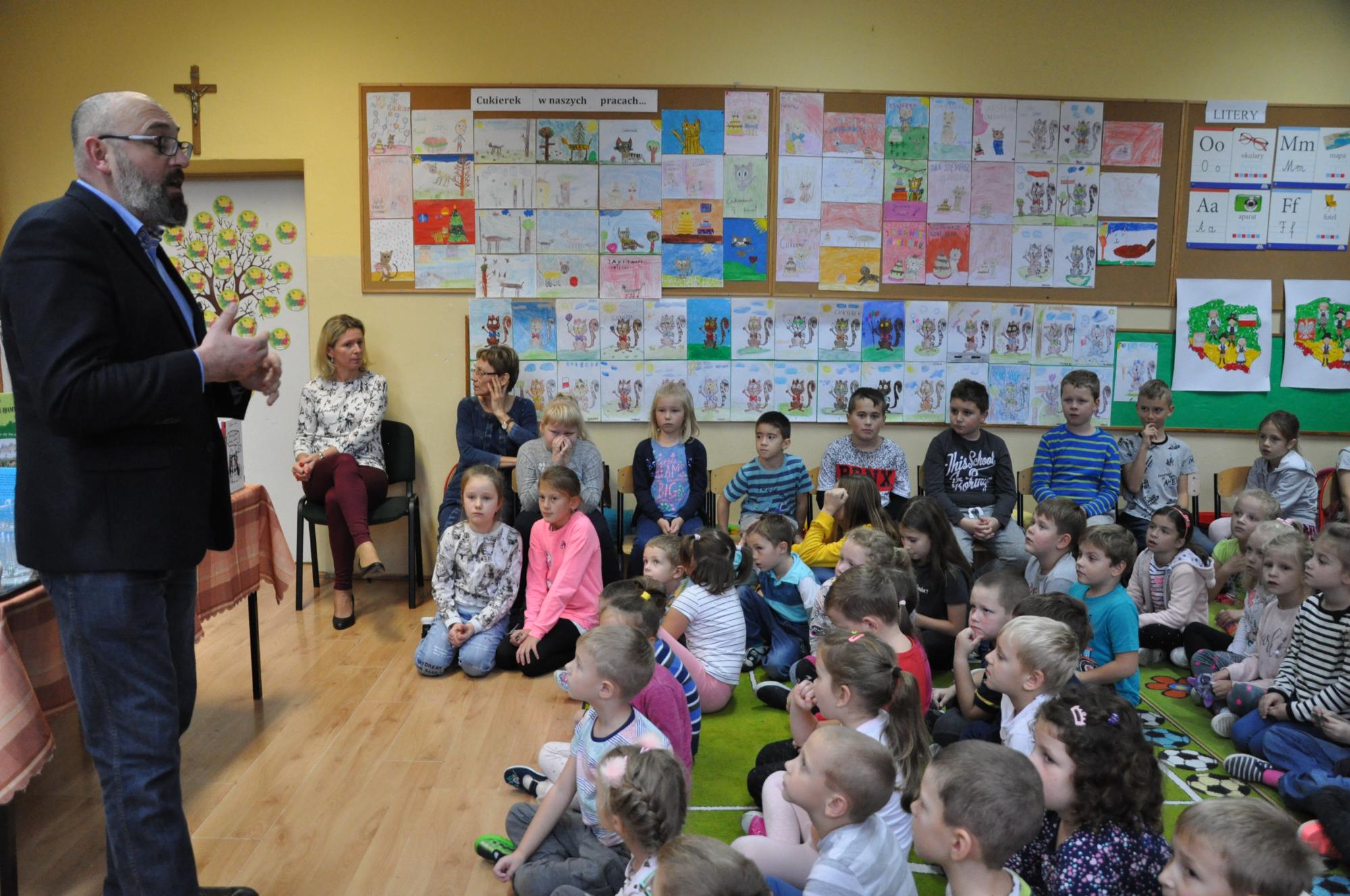 Dnia 29 października 2018 r. w miało miejsce niecodzienne wydarzenie. W tym dniu gościliśmy Waldemara Cichonia – poczytnego pisarza, autora serii książek, z których jedna, „Cukierku, ty łobuzie" została włączona do kanonu lektur dla klas I-III.