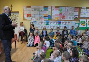 Spotkanie z autorem poprzedził cykl zajęć głośnego czytania książek tegoż pisarza, prezentacja gazetek tematycznych oraz prac plastycznych uczniów. W imprezie czytelniczej wzięli udział uczniowie kl. ,,0” - II, wychowawcy opiekunowie, pani wicedyrektor, nauczyciel – logopeda, nauczyciel świetlicy, nauczyciel - bibliotekarz, pracownik Biblioteki Publicznej w Dankowicach.