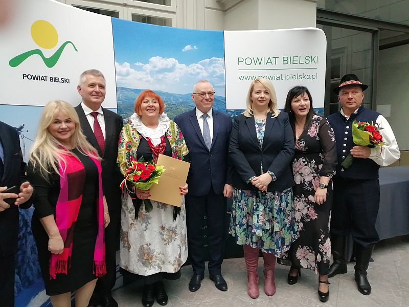 Następnie wyróżnienia twórców i animatorów kultury rozpoczęto od wręczenia przez wicewojewodę Jana Chrząszcza w asyście Starosty bielskiego Andrzeja Płonki dyplomów Honorowych Ministra Kultury i Dziedzictwa Narodowego. Dyplomy otrzymali: Florian Kohut – uznany artysta plastyk, malarz, który w tym roku obchodzi 55 lat pracy twórczej oraz 30-lecie działalności galerii autorskiej; Juliusz Wątroba - uznany poeta, prozaik, satyryk, kabareciarz, członek kabaretu TON, założyciel i autor kabaretu FANaberie, autor 53 książek, kilku musicali, spektakli, programów kabaretowych, tekstów pieśni i piosenek, felietonów, który w tym roku obchodzi 50 lat pracy twórczej.