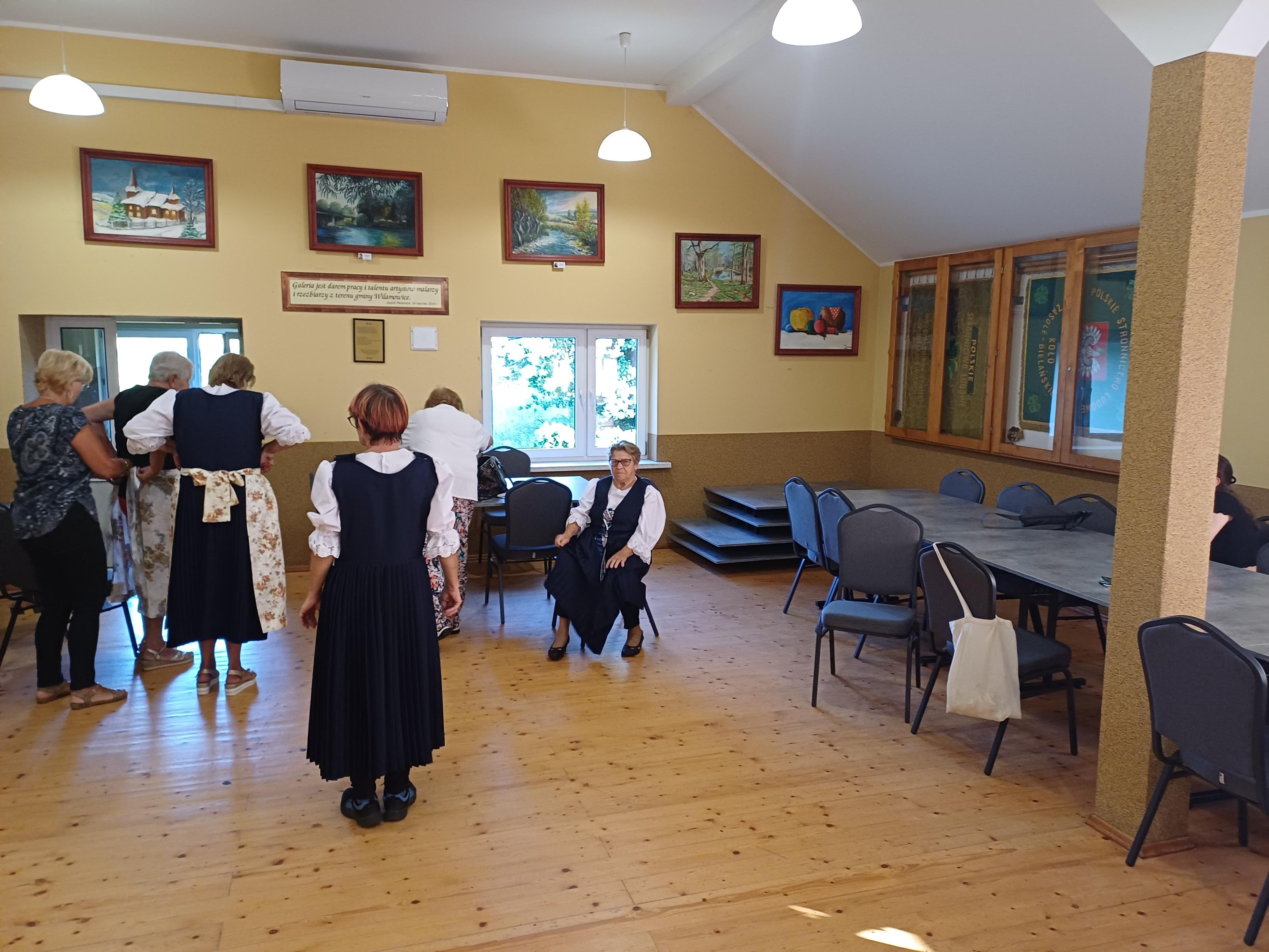 Trwają przymiarki elementów stroju w ramach realizacji zadania pod nazwą "Doposażenie zespołów regionalnych z terenu gminy Wilamowice w niezbędne stroje regionalne" w ramach Programu EtnoPolska. Edycja 2024.