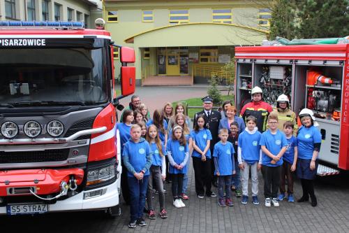 Na wstępie powitano zaproszonych Gości, wśród których honorowe miejsca zajęli: Kierownik ZOSiP - Pani Bożena Sobocińska, Prezes Zarządu OSP w Pisarzowicach – Pan Tadeusz Łaś, Członek Zarządu Ochotniczej Straży Pożarnej w Pisarzowicach – Pan Jan Zawadzki, Członek OSP – Pan Marcin Pudełko, Dyrektor Szkoły Podstawowej im. Jana Pawła II w Pisarzowicach – Pani Lidia Dziubek oraz delegaci ze szkół wraz z opiekunami. Otwarcia obrad dokonała Pani Prezes Joanna Kozieł, a następnie przedstawiono część teoretyczną, której kanwę stanowiła prezentacja multimedialna na temat historii Ochotniczej Straży Pożarnej w Polsce oraz w naszej Gminie. Zaprezentowano rys historyczny każdej z gminnych jednostek OSP, a zaproszeni strażacy przedstawili zebranym szereg ciekawostek na temat funkcjonowania i działalności druhów Ochotniczej Straży Pożarnej w Pisarzowicach. Podczas Sesji przedstawiono również cenne informacje na temat tego, czym różni się Ochotnicza Straż Pożarna od jednostek Państwowej Straży Pożarnej. Wygłoszone prelekcje uzmysłowiły delegatom, że praca strażaka to nie tylko zawód, ale przede wszystkim powołanie, a bycie druhem wymaga odwagi, niezłomności i poświęcenia na rzecz drugiego człowieka. By lepiej zrozumieć specyfikę zawodu strażaka, delegaci mogli odnieść zdobytą wiedzę teoretyczną do działań praktycznych. Przed pisarzowicką Szkołą na zebranych czekały dwa wozy strażackie, do których uczniowie mogli wsiąść, a także zapoznać się z wyposażeniem wozu oraz ze specjalistycznym sprzętem, którego w swojej pracy używają strażacy.