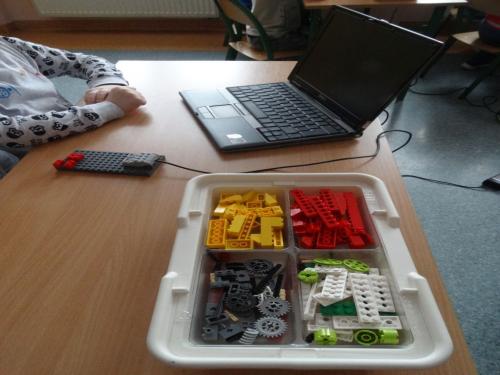 We wtorek 13 stycznia zorganizowane zostały w naszej szkole warsztaty z robotyki dla uczniów klas I-III. Wzięły w nim udział starszaki z grupy IV i V. Dzieci pracowały w zespołach 3 osobowych. Każdy zespół miał do dyspozycji laptop, komplet klocków LEGO.